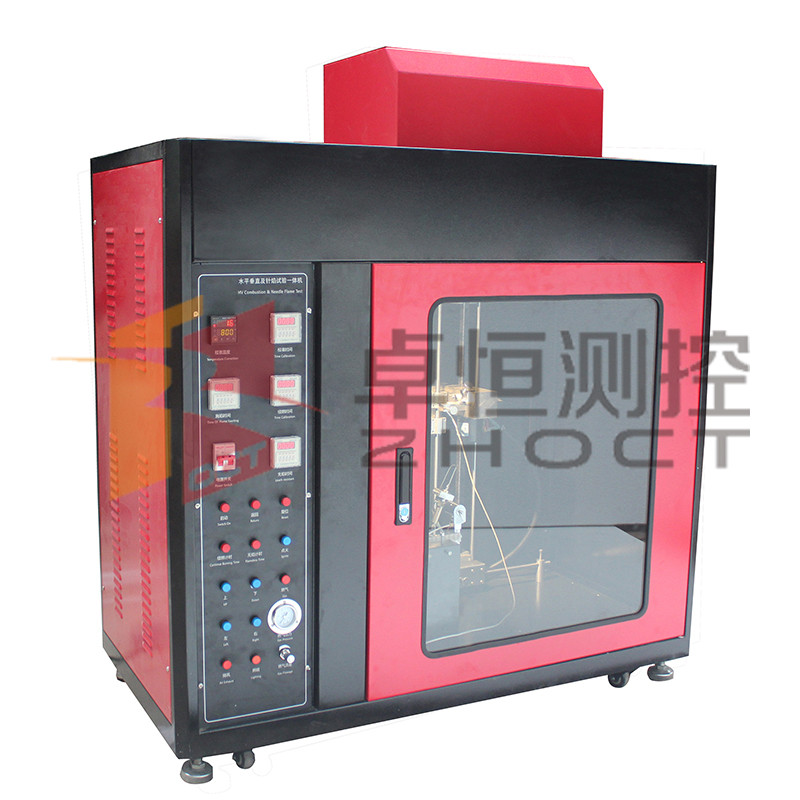 水平垂直及针焰燃烧一体机,是根据标准GB-T2408-2008中针对水平垂直燃烧试验的规定与GB5169.5-2008 及GB4706.1-2005中关于针焰燃烧试验的规定而研制的,完全满足国家标准及相关UL、IEC标准的新型综合设备。该款仪器自动点火、自动计时;同时水平和垂直燃烧式样夹由电机控制,可以自动上下左右移动,不需要人工手拨。